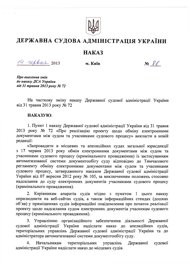 Зміни до наказу ДСА від 31 травня 2013 року №72